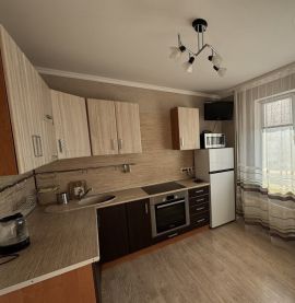 Мебель - кухонный гарнитур, кровать, шкаф. Отличная квартира на длительный срок. Хорошее местоположение дома, центр города.